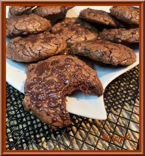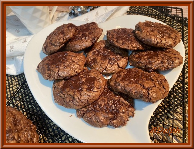 oh des cookies très chocolatés mais surement delicieux, de quoi craquer devant la recette. bonne fin de journée