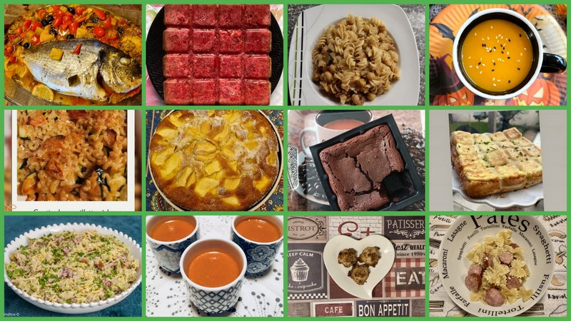 Avec beaucoup de plaisir je vous partage les petits plats ou gourmandises que vous avez réalisés, pour vous remercier d’être à mes côtés, et de venir de temps en temps dans ma cuisine. Merci de votre fidélité, cela me touche beaucoup. Et les recettes salées restent à nouveau les grandes gagnantes avec 7 recettes salées contre 5 sucrées..