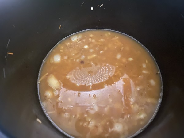 - Ajouter le bouillon chaud, le safran puis lancer la cuisson sous pression 6 minutes.