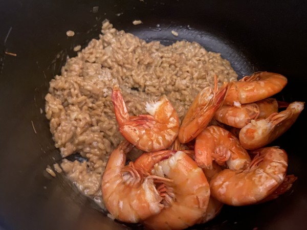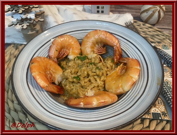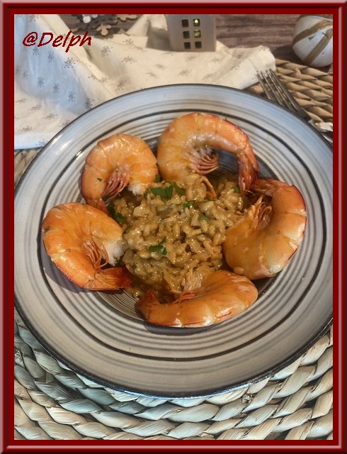 un magnifique risotto avec des gambas, un plat festif et délicieux, bonne fin de journée