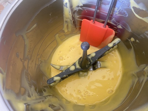 4. Intégrer le beurre coupé en petits morceaux et mélanger 2min/Vit3 avec le fouet.