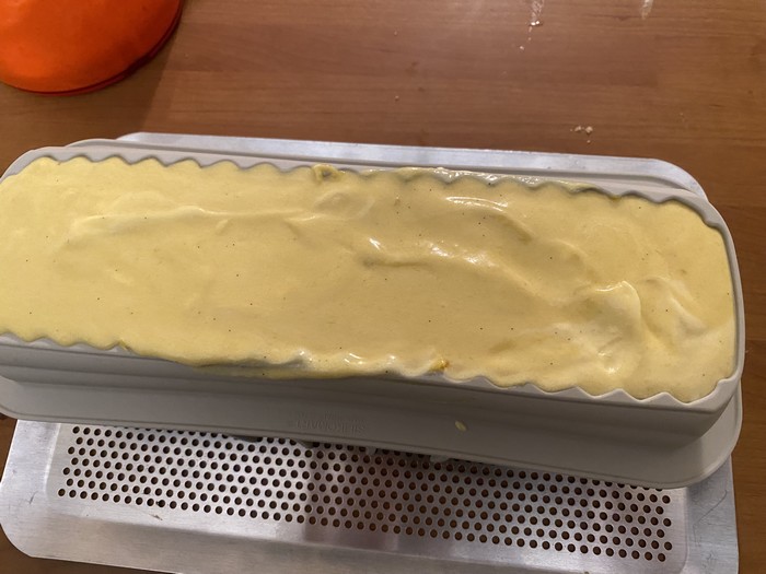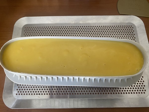 1. Couler les 3/4 de la mousse dans le moule à bûche, placer environ 30 minutes au congélateur.
