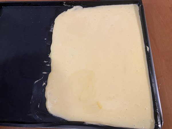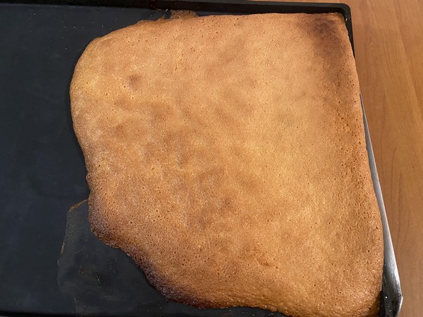 6. Etaler votre préparation sur une toile à génoise beurrée et cuire pendant 13 minutes.