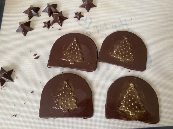 9. Prendre le moule pour embout de bûche. Appliquer du colorant alimentaire doré au pinceau si vous le souhaitez.