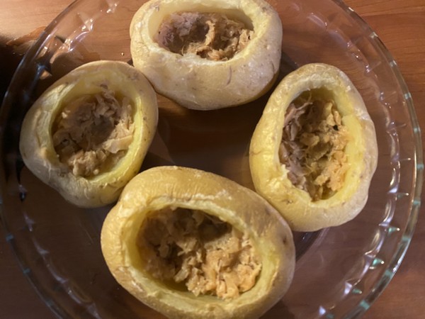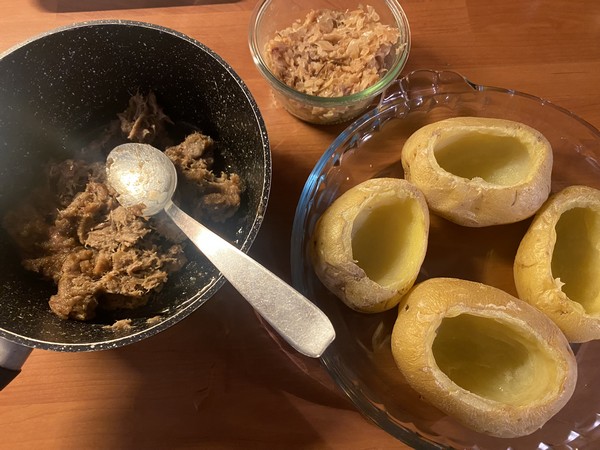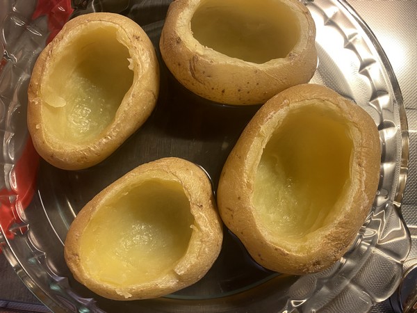 je n’ai jamais farci ainsi des patates, la façon de les creuser, je note