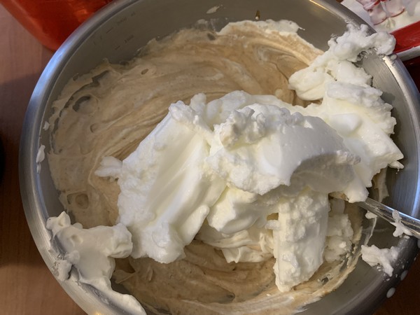 - A l’aide d’u robot d’un batteur, monter les blancs en neige, puis les mélanger délicatement au mélange précédent.