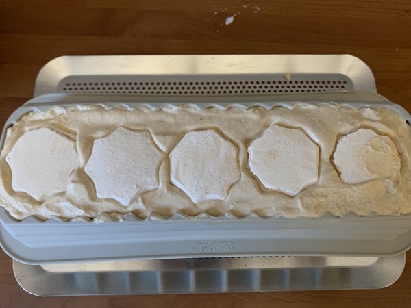 - Verser le mélange dans votre moule, puis enfoncer des meringues.