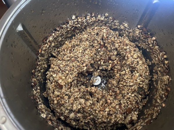 - Ajouter les flocons d’avoine le sarrasin, les amandes et les graines, puis mélanger 1min/couteau inversé/vit2.