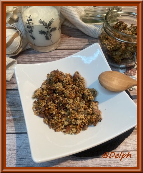 J’aime beaucoup diversifier mes petits déjeuners, et avec les granolas ont peut se faire plaisir car on peut les décliner en différentes versions. Ici, avec le sarrasin cela donne beaucoup de caractère et avec les graines cela croustille sous la dent c’est très agréable.