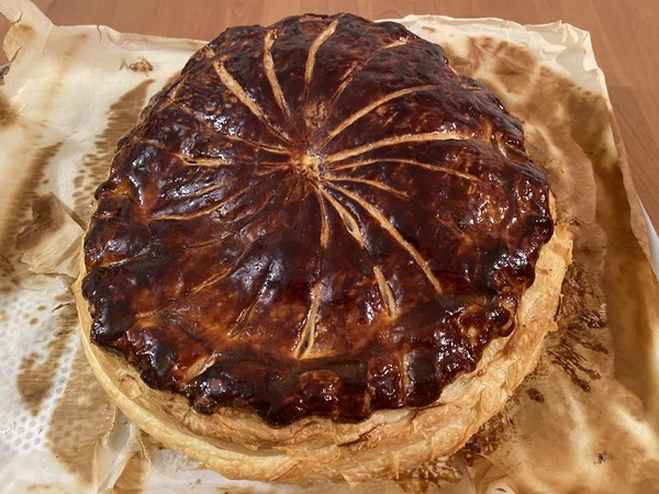 Et voici la traditionnelle galette que nous dégustons en ce début du mois de janvier. Mon mari en est très friand, alors il se régale toujours. Vous avez déjà une belle collection de galettes sur le blog ou brioche des rois, mais celle-ci vient de chez notre Guy pour lui rendre hommage.