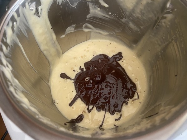 - Verser le chocolat fondu dans la préparation et mélanger 30sec/vit3.
