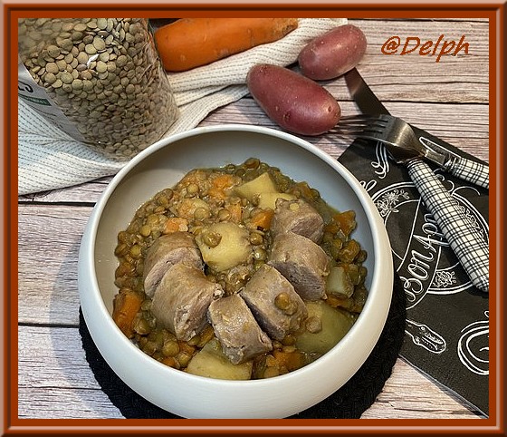 Voici un plat bien réconfortant que l’on déguste très souvent en hiver. Le mélange lentilles, pommes de terre et carottes est très gourmand. Vous pouvez si vous le souhaitez mettre des saucisses fumées. J’ai utilisé des lentilles blondes, car elles ont un goût plus sucré et doux, mais vous pouvez les remplacer par des lentilles vertes.