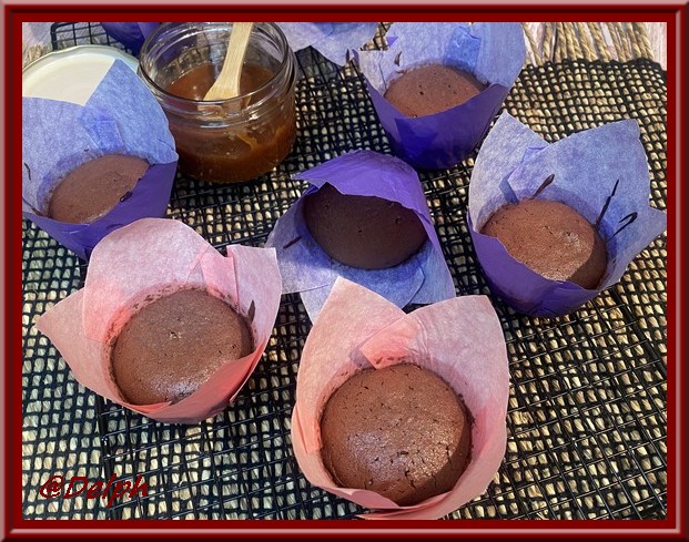Une nouvelle gourmandise pour vos goûters. Voici des petits gâteaux très agréables à déguster. Le goût du caramel arrive en fin de bouche car j’ai utilisé du chocolat à 66% mais vous pouvez utiliser du chocolat mois fort ou au lait. J’ai fait mon caramel au beurre salé mais vous pourrez en acheter du tout prêt il vous faudra environ 150 g de caramel beurre salé.