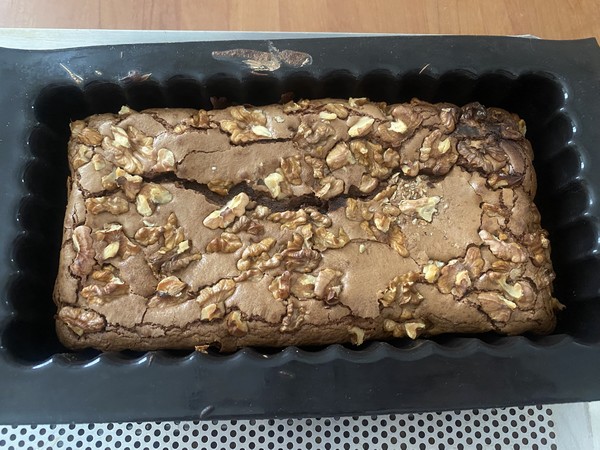 - Beurrer un plat si il n’est pas en silicone, le fariner. Verser la préparation. Déposer les noix dessus.
