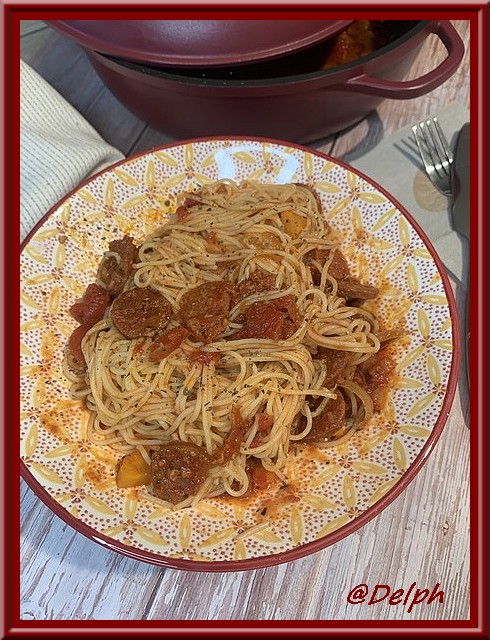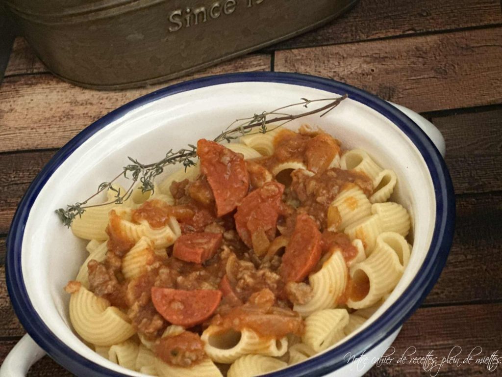 Je commence par Pap's et Mam's que vous pouvez retrouver sur leur charmant blog "Notre cahier de recettes plein de miettes". Ils sont venus s'inspirer de la recette des pâtes bolognaise au chorizo..