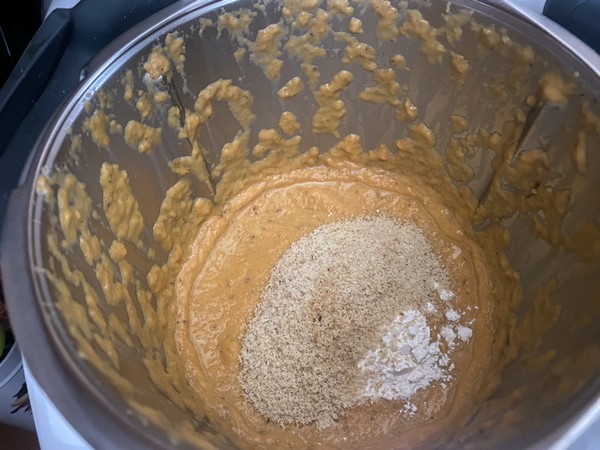 - Ajouter la farine et la poudre d’amande, assaisonner et mélanger 30sec/vit4.