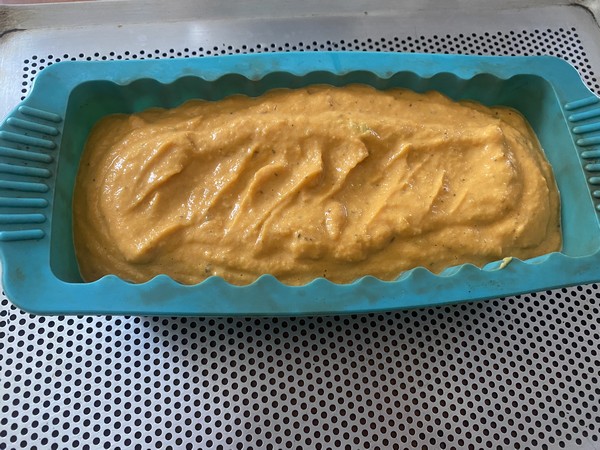 - Verser la préparation dans un moule à cake recouvert de papier sulfurisé huilé en faisant dépasser le papier, inutile si vous prenez un moule en silicone.