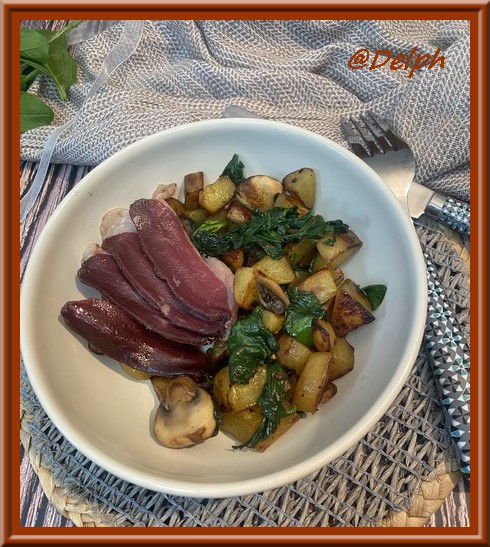 - Ajouter les champignons, laisser de nouveau sur feu moyen environ 10 minutes, en mélangeant régulièrement, puis finir par les épinards, mélanger, assaisonner à votre goût. Lorsque les épinards sont fondus, couper le feu.