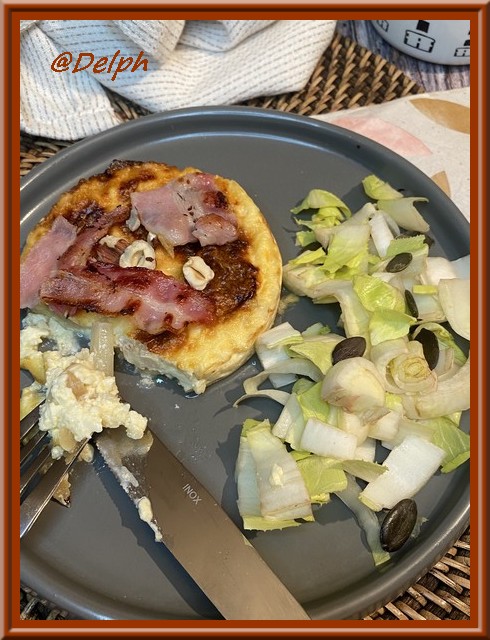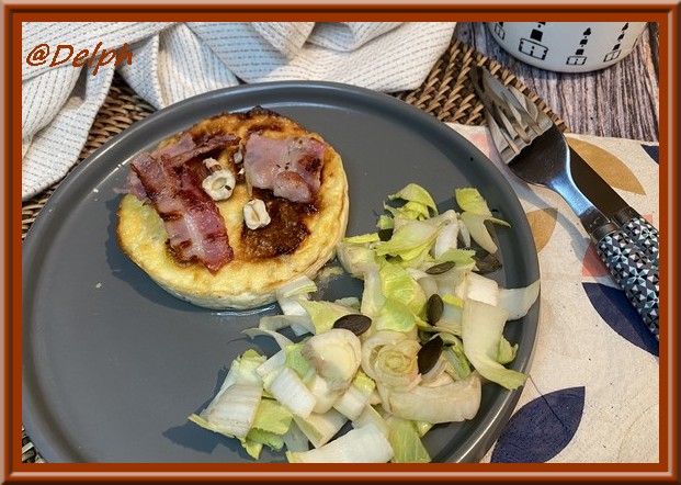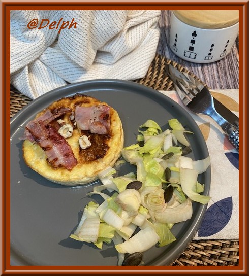 - Laisser refroidir une dizaine de minutes avant de parsemer de noisettes concassées torréfiées et d’ajouter deux chips de lard fumé sur le dessus de vos clafoutis..