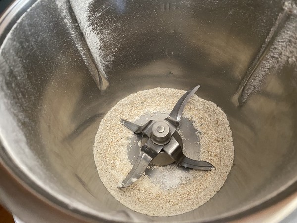 - Pour faire la farine d’avoine, mettre l’avoine dans le bol du Thermomix et mixer 10sec/vit10.