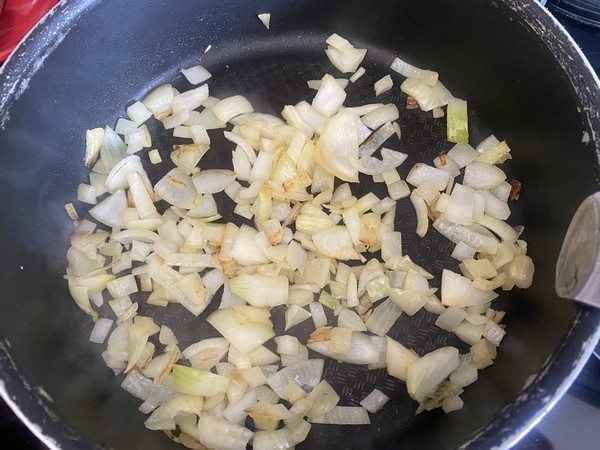 - Dans un sauteuse faire revenir les oignons émincés dans l’huile chaude, pendant 5 minutes, puis ajouter le steak et mélanger.
