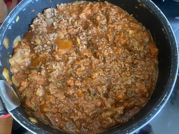 - Verser la sauce tomate et parsemer de persil ciselé. Saler et poivrer, mélanger.