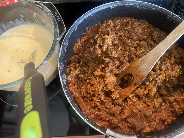 - Dans un saladier, battre les œufs avec la crème, saler et poivrer, ajouter la préparation à base de steak et mélanger