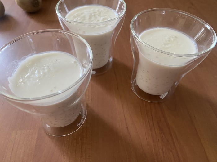 C’est la première fois que je cuisine ces petites perles. J’en mange souvent dans les restaurants asiatiques en dessert. Et voici que je peux me régaler chez moi. Bien sûr, vous pouvez mettre les fruits de votre choix.