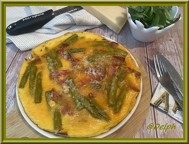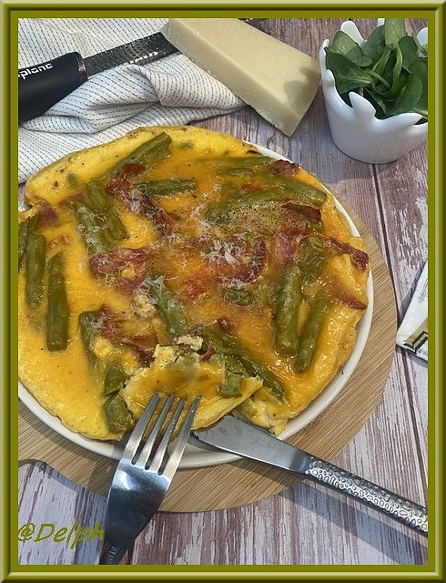 Je passe mes journées dans le jardin, je bichonne mon potager, alors en ce moment je cuisine des petits plats très simples. Cette omelette est rapide avec vraiment très peu d’ingrédients. Je profite en même temps des asperges car la saison est très courte.