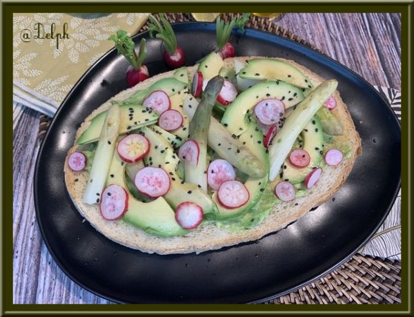 Une nouvelle tartine à partager et à déguster en entrée, cela change. C'est frais et léger. Les asperges étaient en promotion j'ai sauté sur l'occasion pour me faire plaisir. Ingrédients : Pour 1 grande tartine 1 avocat 6 asperges blanches quelques radis roses graines de sésame noir sel poivre huile d'olive au citron 1 citron... Lire la Suite →