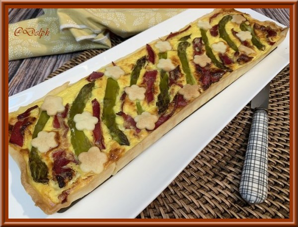 Tarte aux asperges vertes, ricotta, coppa et parmesan