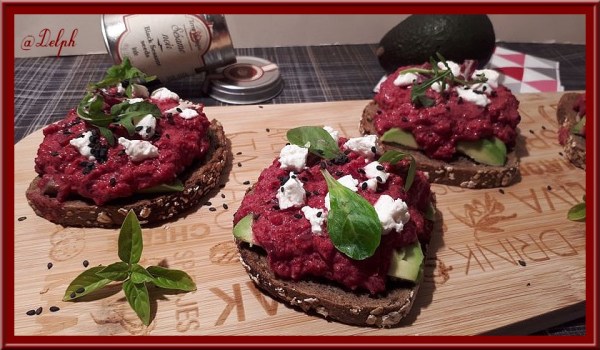 Voici des tartines fraîches et légères que vous pourrez déguster en entrée ou pour un apéro dinatoire. Ingrédients : Pour 4 tartines 4 tranche de pain complet1 c à s d'huile d'olive1 betterave rouge cuitesel poivre1 c à c de basilic séché1 avocat1 trait de jus de citronfromage de chèvre frais type Petit Billy pour... Lire la Suite →
