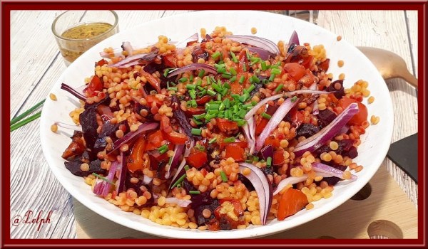 C'est Martine sur son blog Kilomètre 0 qui m'a donné envie de faire cette délicieuse salade, Martine la décline avec du petit épeautre, j'ai opté pour un mélange de boulghour et de perles bio et j'ai ajouté un peu de fromage de chèvre frais. C'est une salade fraiche et légère, nous nous sommes régalés. Ingrédients... Lire la Suite →