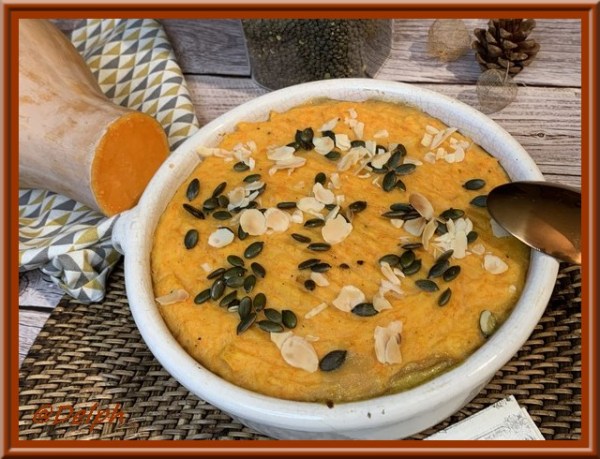 Voici un délicieux parmentier qui change. Ici, j'ai utilisé de la butternut, mais vous pourrez bien évidemment prendre la courge que vous souhaitez. Vous pourrez le déguster en plat végétarien ou pour un accompagnement d'un poisson ou d'une volaille. Ingrédients : Pour 2/3 personnes 1.2 oignon jaune 1 gousse d'ail dégermée 2 carottes en rondelles... Lire la Suite →