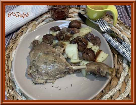 Cuisses de canard confites, pommes de terre, et châtaignes à la fabuleuse