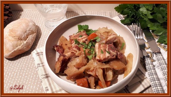 Chou blanc aux pommes de terre, carottes et poitrine fumée