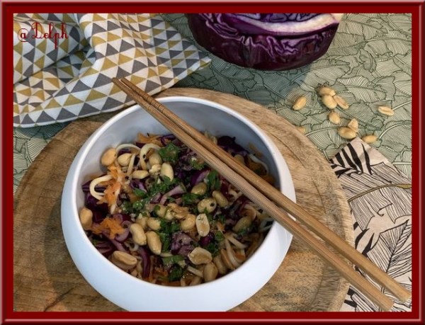 Voici une nouvelle salade bien gourmande, le chou rouge apporte du croquant et les cacahuètes une belle gourmandise. Et cette sauce vinaigrette je l'aime beaucoup, je l'ai réalisée avec de la purée d'amande mais vous pourrez utiliser du beurre de cacahuètes, mais cela sera peut être un peu plus calorique je pense.... Ingrédients : Pour... Lire la Suite →