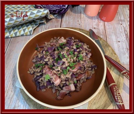 Blé au chou rouge et poitrine fumée