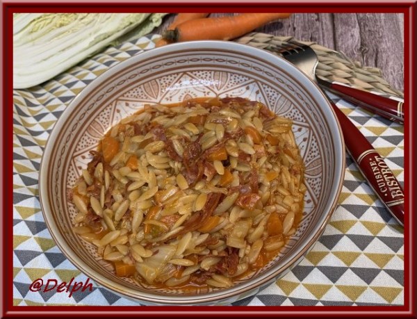 J'ai voulu goûté ces petites pâtes que je ne connaissais pas. Elles sont très bonnes , elles ressemblent à des gros grains de riz. Si vous souhaitez un plat végétarien , il vous suffit de de pas mettre le chorizo. J'ai réalisé ce plat au Cookéo, mais pourrez le faire à la cocotte. Ingrédients :... Lire la Suite →