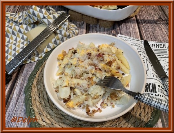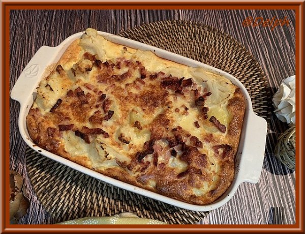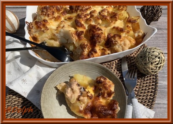 Gratin de pommes de terre, chou-fleur et œufs durs
