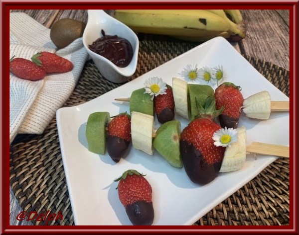 Brochettes de fruits et sauce au chocolat