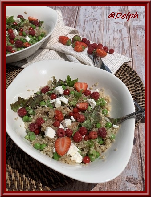 Salade de quinoa, petits pois et fruits rouges