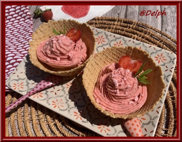 Une délicieuse glace au bon gout de fraises, elle est vraiment très bonne. Je l'ai présentée dans mes coupelles desserts de prêt à garnir, j'ai également utilisé leur poche à douille pour la disposer comme une glace à l'italienne. Ingrédients : 4 personnes 30 minutes avant 100 g de lait concentré non sucré Au moment... Lire la Suite →