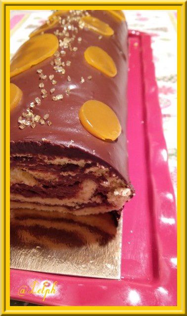 Bûche au chocolat et son insert au crémeux de fruits de la passion