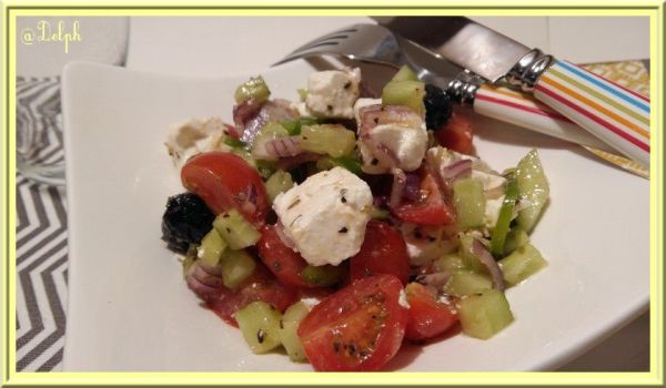 Une nouvelle salade qui va nous faire voyager jusqu'à Athènes, et faire venir le soleil dans nos assiettes. Ingrédients : Pour 2/3 personnes 2 belles tomates1 concombre1 petit oignon rouge1 petit poivron corne douxQuelques olives noires50 à 100 g de feta1 c à c d'origan mouluDe l’huile d’olivesel Préparation Sortir les légumes du réfrigérateurCouper les... Lire la Suite →