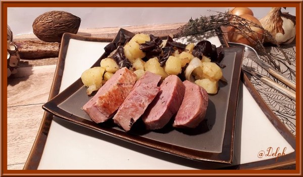 Magrets de canard aux pommes de terre et champignons noirs