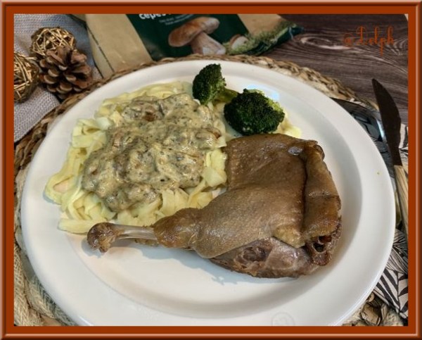 Cuisses de canard confites et sauce aux cèpes