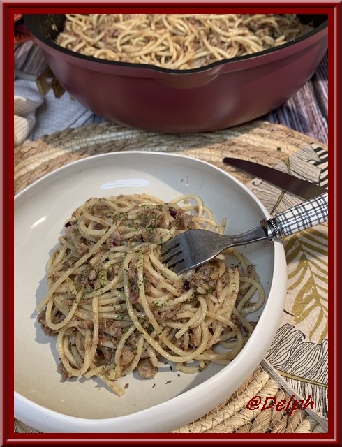 C'est mon mari qui a souhaité cette recette. J'avais des cuisses de canard canard, j'ai prélevé la viande et je l'ai hachée, mais vous pouvez bien sûr la laisser en effiloché. Ingrédients : Pour 4/5 personnes 350 g de spaghetti sèche 500 g de viande de canard ( effiloché ou haché) 1 gousse d'ail 2... Lire la Suite →