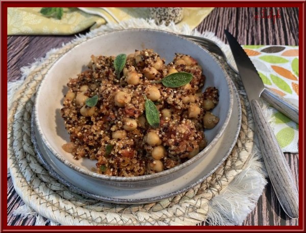 Une nouvelle recette express avec peu d'ingrédient et végétarienne. J'ai réduit mes apports de protéines animales et cette assiette me convient parfaitement. J'ai ajouté un peu de sauge en fin de cuisson, j'aime beaucoup le petit goût que cela donne, et en plus mon pied de sauge est très généreux.. Ingrédients : Pour 3/4 personnes... Lire la Suite →