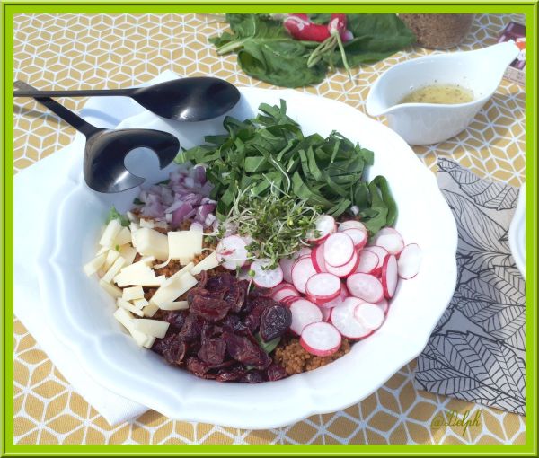 Voici une salade printanière, très facile à réaliser. Je suis fan de ces bowls où l'on peut regrouper les ingrédients de saison de notre choix pour se régaler. Ingrédients : Pour 2 bowls 150 g de lentilles vertes20 radis10 tomates cerises110 g de thon au naturel égouttécœur de batavia2 petits oignons frais Pour la vinaigrette... Lire la Suite →